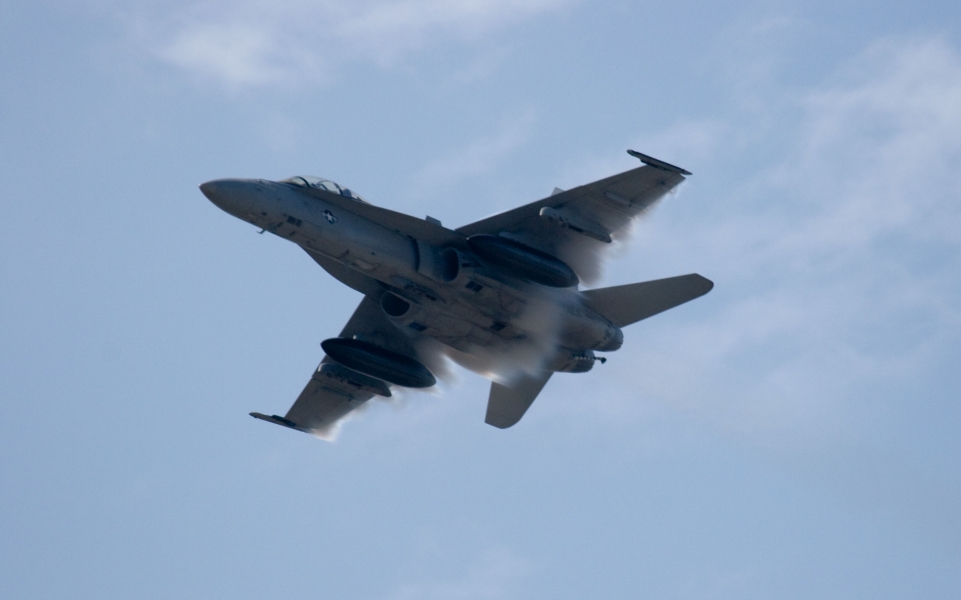 プログラム開始の9時より少し前からジェット戦闘機独特の轟音で離陸していく米軍F18。