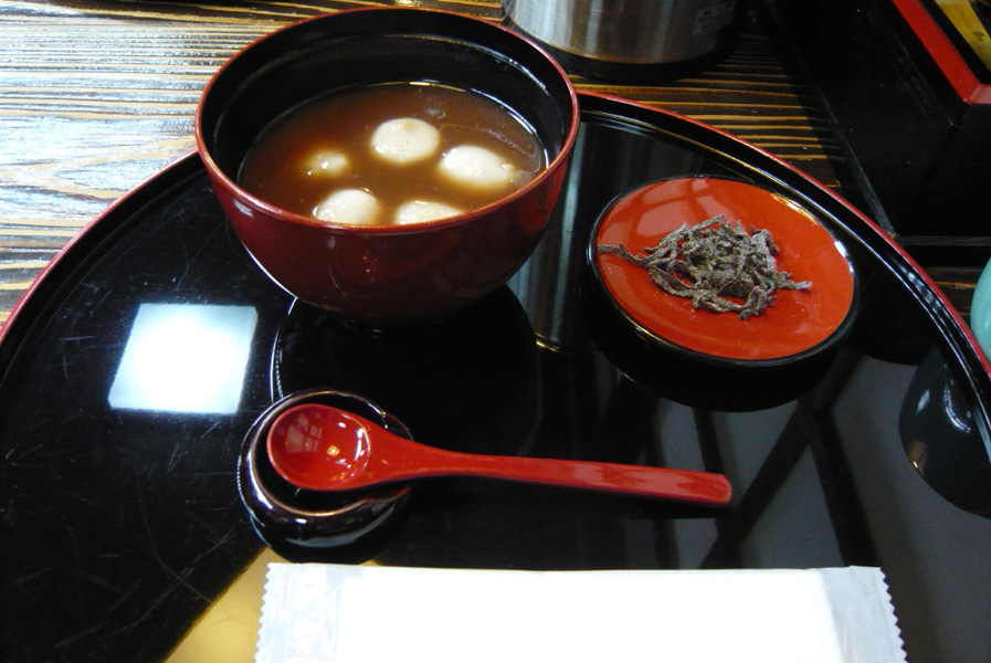 それから、参道を歩いてた時にたまたま見かけた、ぜんざい発祥の地なる看板のお陰で、みんな「ぜんざいぜんざい」 頭になってたので、ぜんざいを食べに近くのぜんざい屋へ。