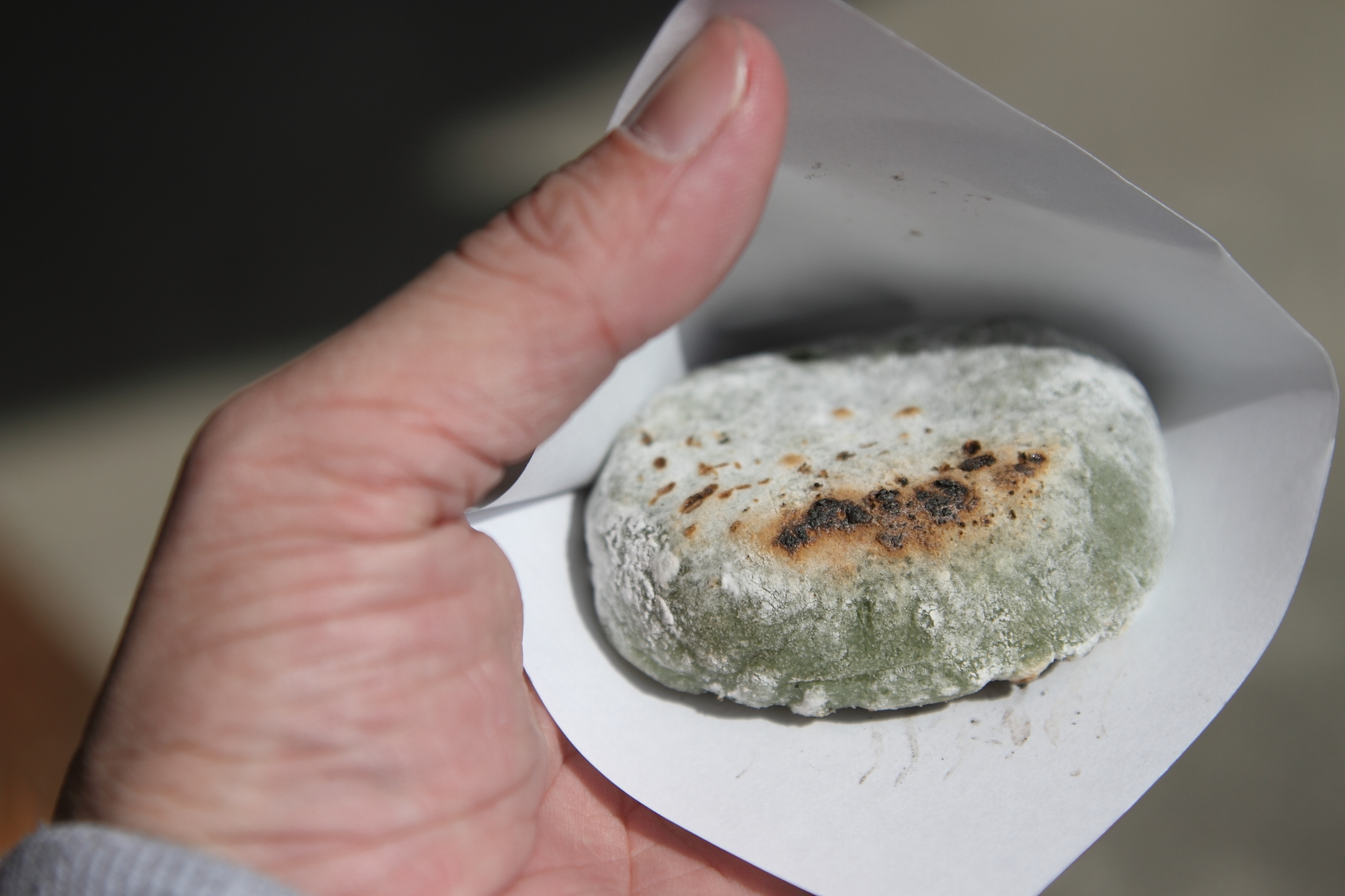 だいぶ気分悪い昼飯の後、イガイガした気持ちをリセットするために、こんにゃく田楽をみんなで食べたよ。こんにゃく田楽(100円)はショウガ味噌をチョイス。他には、合わせ味噌、梅、胡椒、ゆず、にんにく味噌とバリエーション豊富。しょうが味噌もナイスでした。、草餅は最高でしたよ。少しお腹の足しになったけど、やっぱりもう1個草餅食べよと。もうひとつ。草餅最高です(笑