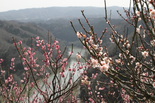 そこから見晴らし展望台へ。月ヶ瀬ダムを見下ろしながらの梅も綺麗です。